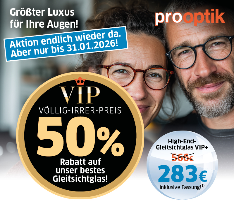 Auf sämtliche Herstellungs- oder Materialfehler. Denn alle Brillen bei pro optik erfüllen höchste Qualitätsansprüche.